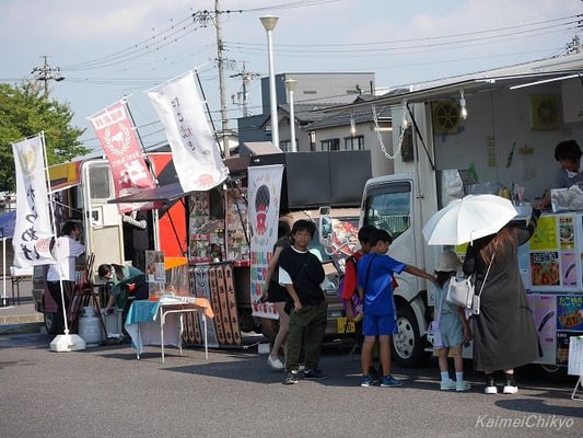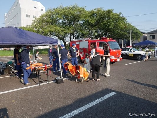 開明消防団、一宮警察署のご協力により、消防自動車やパトカーの乗車体験ブースもありました。