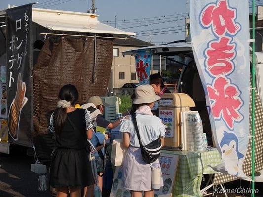 今年は、もちもちロングポテト、焼きそばにたこ焼き、から揚げにかき氷。暑い中、かき氷で一息つく小学生や小さな親子連れの方も。