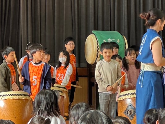 私は太鼓を体験しましたが、たたいてみると意外と音が小さくて、奥風太鼓の皆さんは凄い力でやっているんだなと衝撃を感じました!