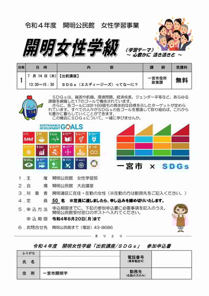 女性学級<出前講座『SDGs(エスディジーズ)ってなーに?』>を開催します。