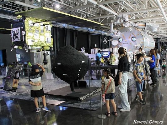 「宇宙エリア」では、ロケットや人工衛星、宇宙服、宇宙食などが展示されていました。