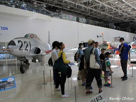 「航空エリア」では、時代に沿った本物の飛行機やヘリコプターが多数展示され、航空の歴史や産業について学びました。また、シアタールーム、操縦シュミレーション体験、夏休用シルエットクイズ、初飛行40周年記念企画展「飛鳥」などの施設もありました。