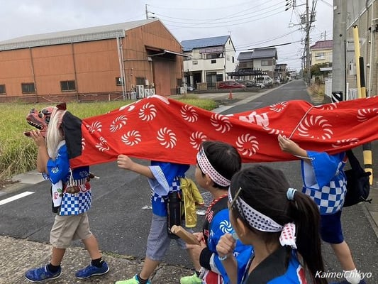 町内をそれぞれ回り、子どもたちは「わっしょい!」と元気いっぱいの声を響かせながら、楽しく参加することができました。