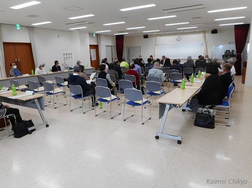2023年4月23日(日)午前9時30分より、開明公民館大会議室において、公民館の本部役員及び協力部役員・町会長並びに推進委員代表35名の関係者が集まり、「令和5年度 開明公民館 年度初総会」を開催しました。