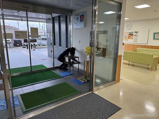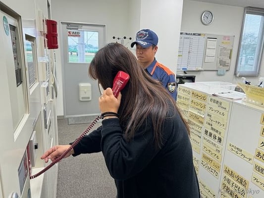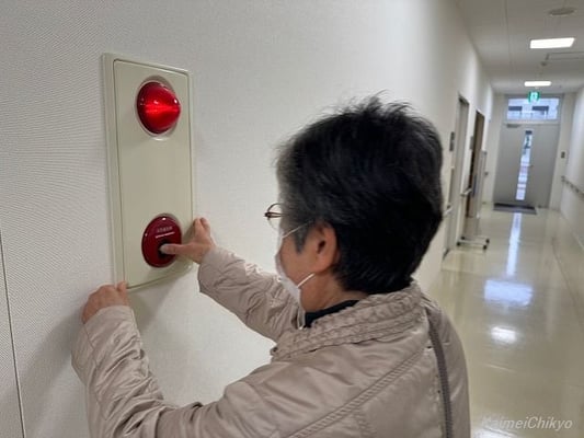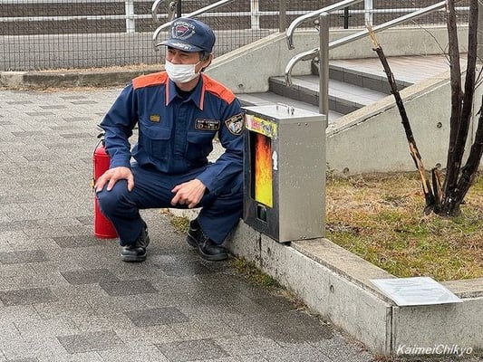 まずは消防訓練として、足つぼ健康ヨーガの古田代表の火災報知器ボタンのオン!