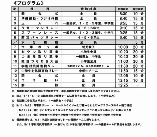 - 競技中における疾病・負傷などについては、本部席(救護係)までご連絡ください。