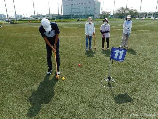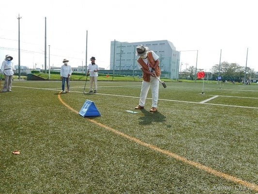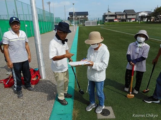9月20日(水)午前10時から尾西運動場グラウンドにおいて、今年最初の魅力部事業「グラウンド・ゴルフ体験会」を実施しました。参加者は14名でした。