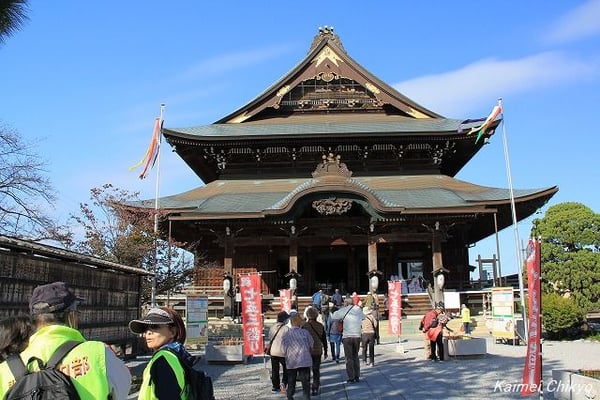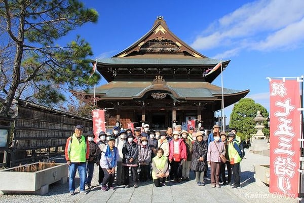 午前9時50分に祖父江善光寺に到着後、各自お参りし、午前10時10分にぎんなんパーク会場めざしてウォーキングスタート!