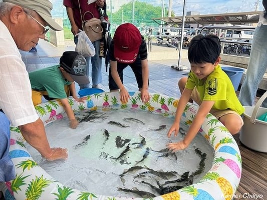 7月19日(土)午後4時から開明公民館テラスにおいて、第2回アユつかみ大会を開催しました。