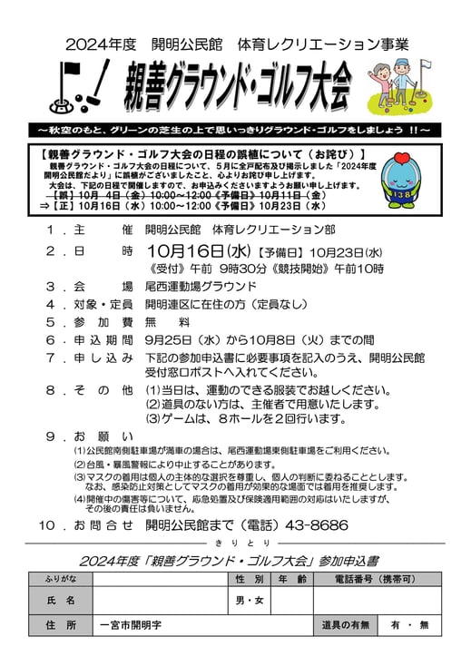 体育レクリエーション部主催「親善グラウンド・ゴルフ大会」を開催します。奮ってご参加ください!!