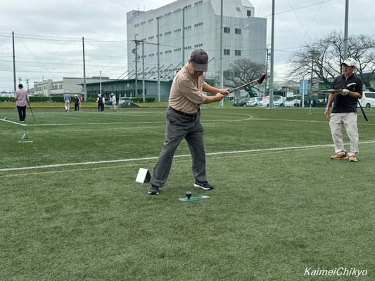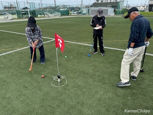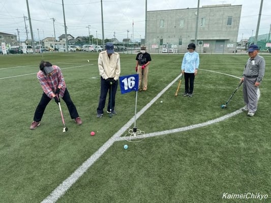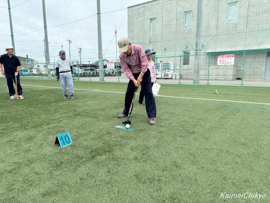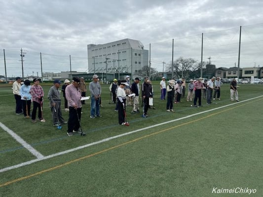 10月16日(水)午前10時から尾西運動場グラウンドにおいて、曇り空の中、体レク部主催の「親善グラウンド・ゴルフ大会」を実施しました。参加者は38名でした。
