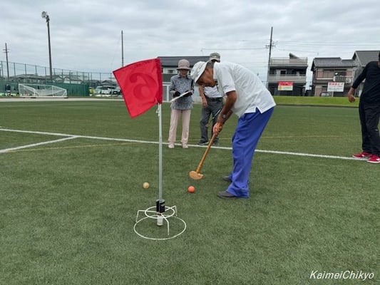 日頃クラブで練習している人、初心者の人も各組のリーダーに教えてもらい、汗を掻きながら懸命にプレイしている姿がありました。
