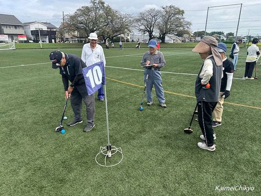 大会は、1人でホールインワン3回出す人、又、何度もカップをオーバーし打数を増やす人など、和気あいあい楽しくプレーしている姿がありました。