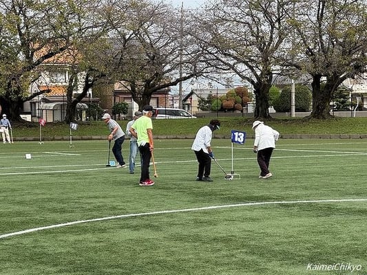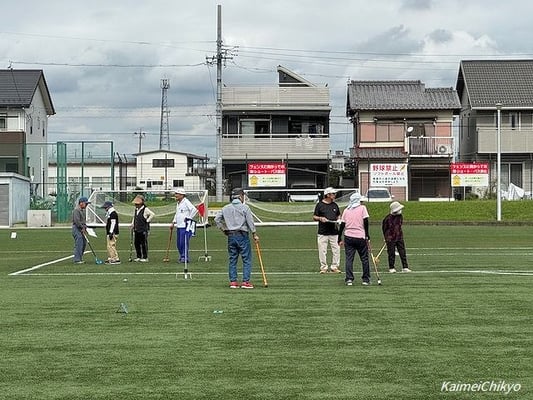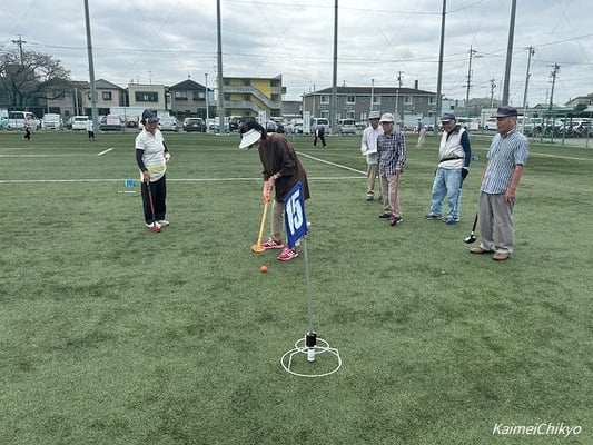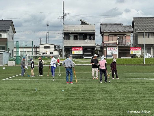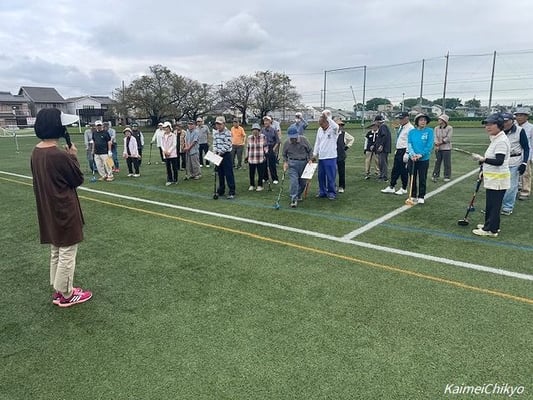 10月15日(水)午前10時から尾西運動場グラウンドにおいて、曇り空の中、体レク部主催の「親善グラウンド・ゴルフ大会」を実施しました。参加者は36名でした。