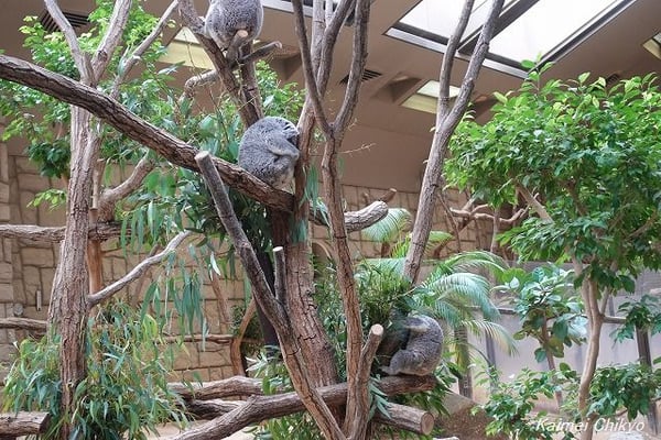 ペンギン、アシカ、キリンを見たあとは、動物園の人気者、コアラに会いに行きました。大勢の人が押しかけてくるのを尻目に、当のコアラたちは悠々と昼寝していました。木の上で微動だにしない光景に、見ている側ものんびりした気分にさせられました。