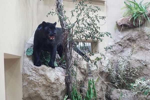 まず北園門から延びる道路を進み、アメリカゾーンを横目に見ながら、最近オープンしたジャガー舎に入りました。黒光りするジャガーの姿は威圧感満点でした。