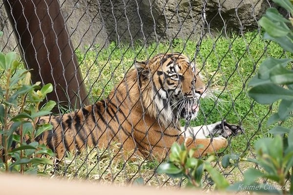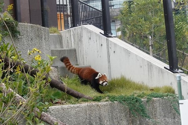 そのあと長い階段を下り、アフリカゾーンを抜けて、北園エリアから本園エリアへ移動。ゾウ、カンガルー、トラ、ライオンなどを見てから、レッサーパンダ舎に到着。