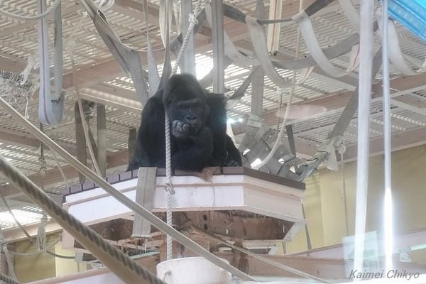 正直言って、5頭いるゴリラの区別がつかなかったのですが、シャバーニと思しきゴリラは、終始高いところにいて、ずっと頬杖をついて哲学でもしているポーズをとっていました(間違っていたらごめんなさい)。