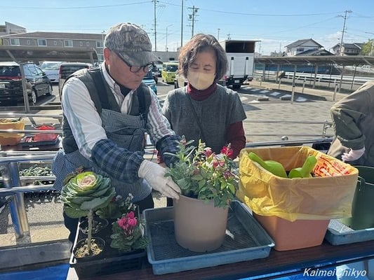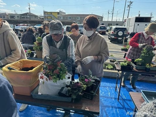 参加者の皆さんは、葉牡丹を中心にとてもキレイなカラーで彩られた素敵な寄せ植えと、笑顔をお土産に、公民館をあとにしていました。