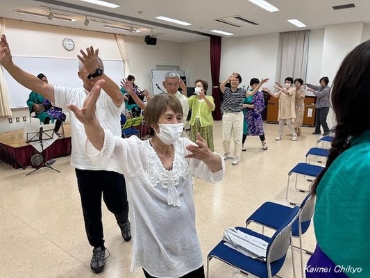アンコールでは、宮古島ダンス「クイチャー」の演奏に合わせ、三線メンバーにご指導いただきながら、会場に大きな円をつくり、みんなで踊りました。
