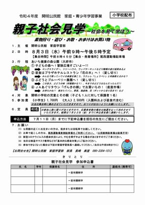 家庭・青少年学習部主催「親子社会見学~社会を見て学ぼう~」の申込みを受け付けています。夏休みの日記のネタにいかがですか?